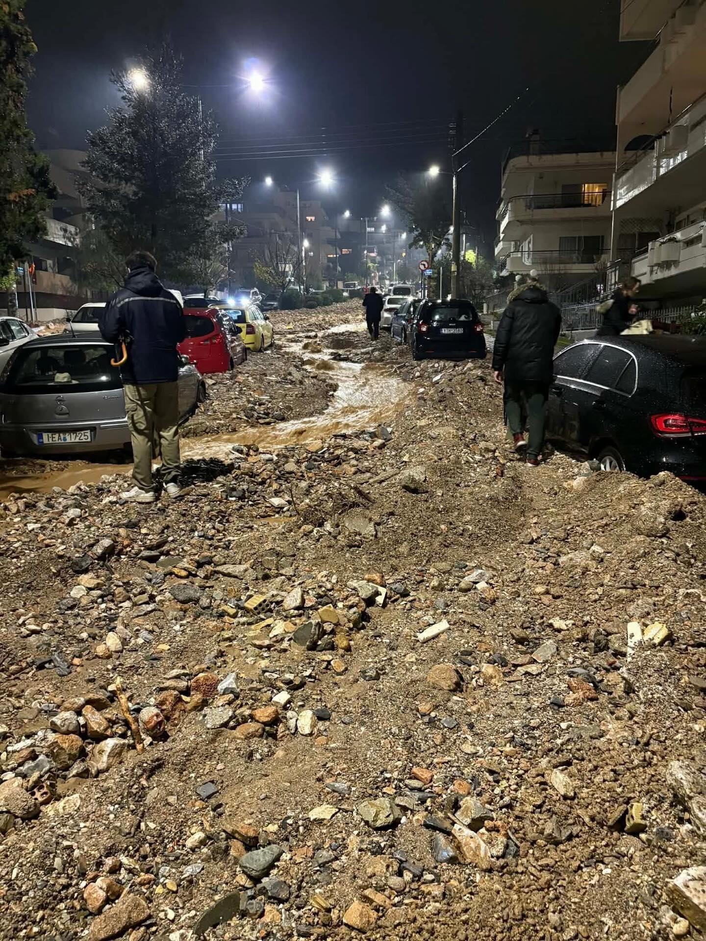 Η ισχυρή βροχόπτωση που πλήττει την Αττική από το απόγευμα της Τετάρτης (21/01) προκάλεσε εκτεταμένες καταστροφές, με δρόμους της Γλυφάδας να μετατρέπονται σε χείμαρρους και οχήματα να παρασύρονται από τα ορμητικά νερά.