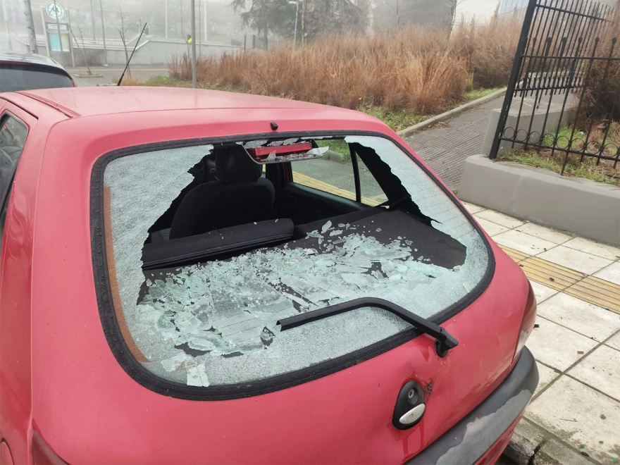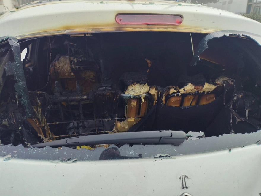 Από τη ρίψη μολότοφ ένα αυτοκίνητο καταστράφηκε ολοσχερώς ενώ άλλα δύο αυτοκίνητα έχουν υποστεί σοβαρές φθορές