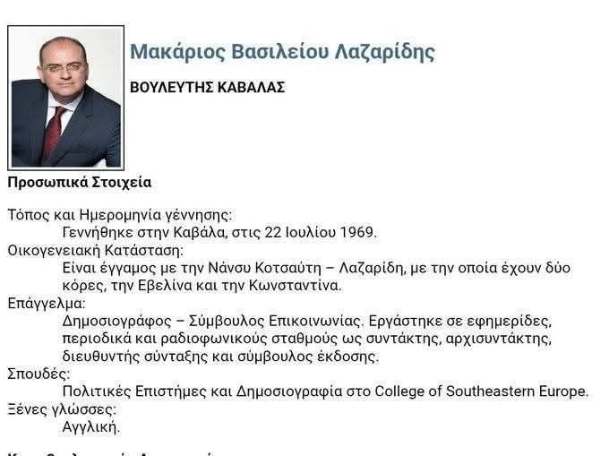 Παράλληλα, ο πρόεδρος των Δημοκρατών – Προοδευτικό Κέντρο έθεσε ζήτημα διαφάνειας και για τις πανεπιστημιακές σπουδές του Μακάριου Λαζαρίδη. Όπως επισημαίνει, στο βιογραφικό του, το οποίο είναι αναρτημένο στην ιστοσελίδα της Βουλής, αναφέρεται ότι ο υφυπουργός έχει σπουδάσει Πολιτικές Επιστήμες και Δημοσιογραφία στο «College of Southeastern Europe».