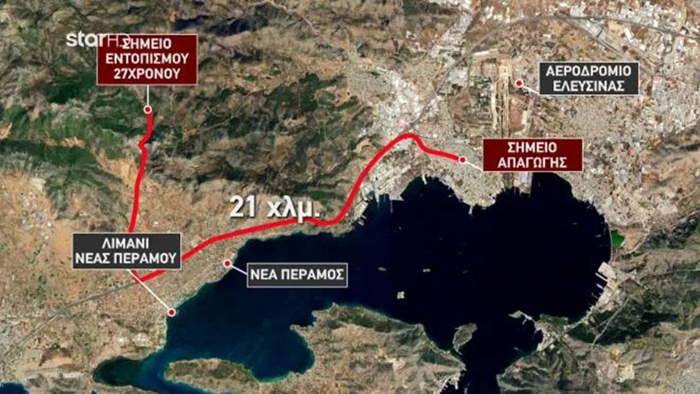Ο 27χρονος επιχειρηματίας απήχθη κάτω από το σπίτι του στην Ελευσίνα και βρέθηκε δολοφονημένος σε ρέμα στη Νέα Πέραμο. Οι δράστες φέρεται να ακολούθησαν μια διαδρομή περίπου 21 χιλιομέτρων, όπως φαίνεται και στον χάρτη. Μάλιστα, στα τελευταία λεπτά της διαδρομής ο δρόμος φαίνεται κακοτράχαλος.