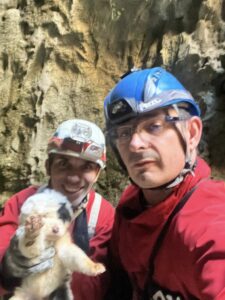 Η ομάδα «Χείρων» εντόπισε το κουταβάκι αλλά και σωρό από σκουπίδια στο σπήλαιο, διασώζοντας το κουταβάκι. Η ομάδα «αντίκρισε τη φρίκη, αλλά και την ελπίδα στο Πήλιο, στο σπήλαιο της Καίτης», γράφει στην ανάρτησή του ο κ. Βαξεβανόπουλος.