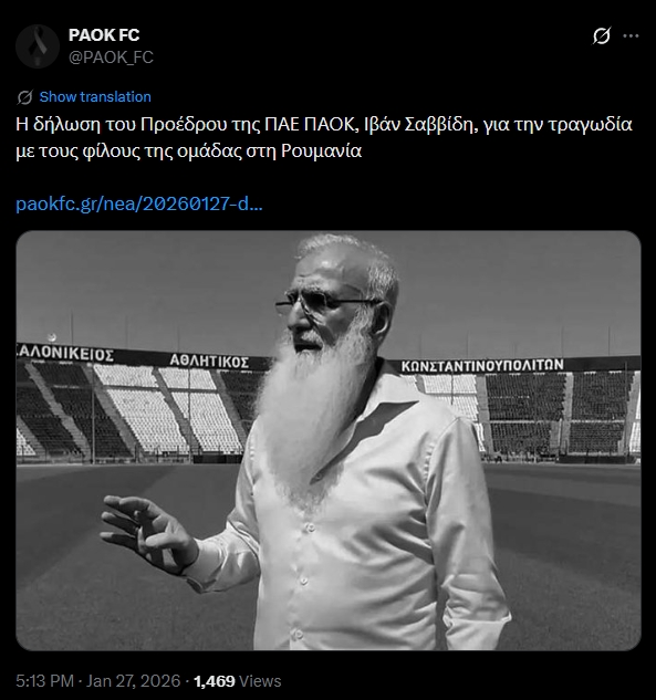 Η συγκλονιστική δήλωση του Προέδρου της ΠΑΕ ΠΑΟΚ, Ιβάν Σαββίδη έπειτα από τον αδόκητο χαμό των επτά φίλων του Δικεφάλου στο τροχαίο δυστύχημα στη Ρουμανία.