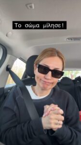 Και πρόσθεσε: «Καταπιέζεσαι κούκλα μου; Έκανα τις εξετάσεις αίματος, που κάνω κάθε κάποιους μήνες, γιατί τσεκάρω κάποια πράγματα και φυσικά, αυτό φάνηκε στις εξετάσεις, και τώρα μου πήγε να… Και τώρα το Μαράκι προσπαθεί να μπει πάλι σε πρόγραμμα, γιατί δεν είμαστε πια 15, 20, 30, είμαστε μιας ηλικίας και αποτυπώνονται στο σώμα μας όλα αυτά. Το σώμα μίλησε! Άρα ακολουθώ».