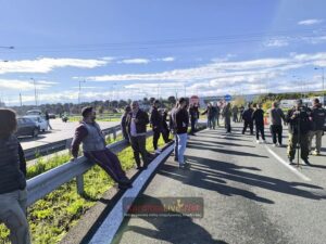 Κλούβες των ΜΑΤ είχαν κλείσει τις εισόδους και εξόδους του ανισόπεδου κόμβου του αυτοκινητόδρομου Ε-65, προκειμένου να αποτρέψουν την πρόσβαση στους διαδηλωτές.
