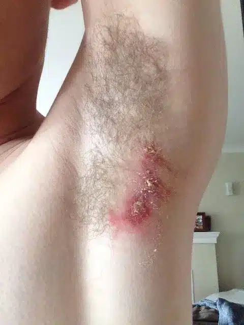 Απ ότι φαινόταν, το καινούργιο αποσμητικό που είχε αγοράσει του είχε προκαλέσει χημικά εγκαύματα στο δέρμα.