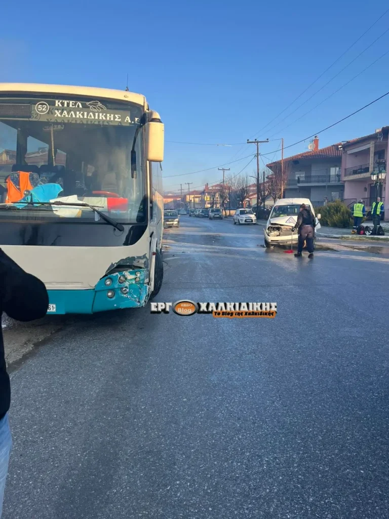 Λίγο μετά τις 8 το πρωί της Τετάρτης βανάκι με 6 επιβάτες που κινείτο μέσα στο Παλαιοχώρι Χαλκιδικής συγκρούστηκε μετωπικά με λεωφορείο το οποίο μετέφερε 35 μαθητές Γυμνασίου και Λυκείου και κινείτο με κατεύθυνση προς Αρναία.