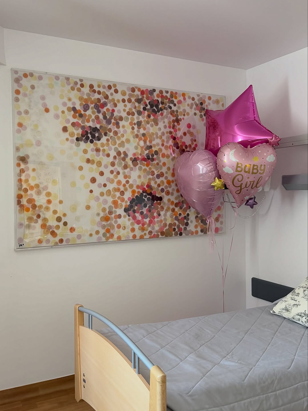 Στις εικόνες που δημοσίευσε, το δωμάτιο στο μαιευτήριο είναι γεμάτο ροζ μπαλόνια και διακοσμητικά, δημιουργώντας ένα σκηνικό γιορτής για τον ερχομό της μικρής Πολυξένης-Αλεξάνδρας. Δίπλα της βρίσκεται και ο σύντροφός της, Παναγιώτης Κουτσουμπής, με τον οποίο μοιράζεται αυτές τις πρώτες, μοναδικές στιγμές ως μαμά και μπαμπάς πλέον.