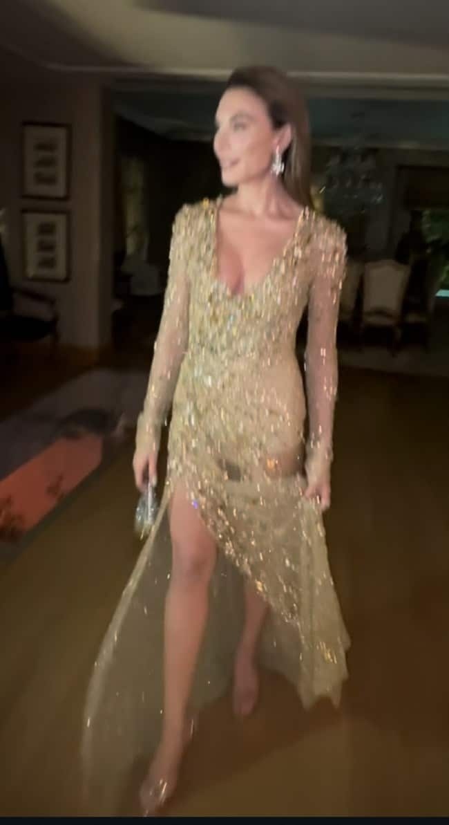 Η δημοσιογράφος φορούσε μία ολόχρυση δημιουργία της διεθνούς φήμης Ελληνίδας σχεδιάστριας Σήλιας Κριθαριώτη.