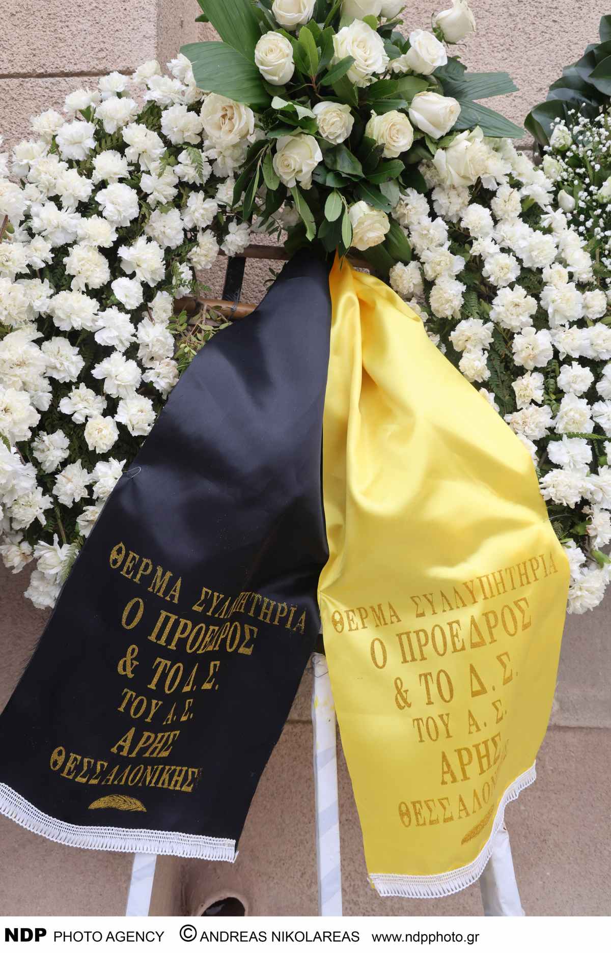 Που να ήξερε ο κύριος Λιάγκας όμως ότι αυτό που έλεγε θα πραγματοποιούταν.. Πράγματι, η ομάδα του Άρη έστειλε ένα στεφάνι στα χρώματα της ομάδας, ενώ το ίδιο έκανε και το ΚΚΕ. Το στεφάνι του ΣΥΡΙΖΑ υπήρξε πιο διακριτικό, έχοντας περιοριστεί σε απλές ευχές!