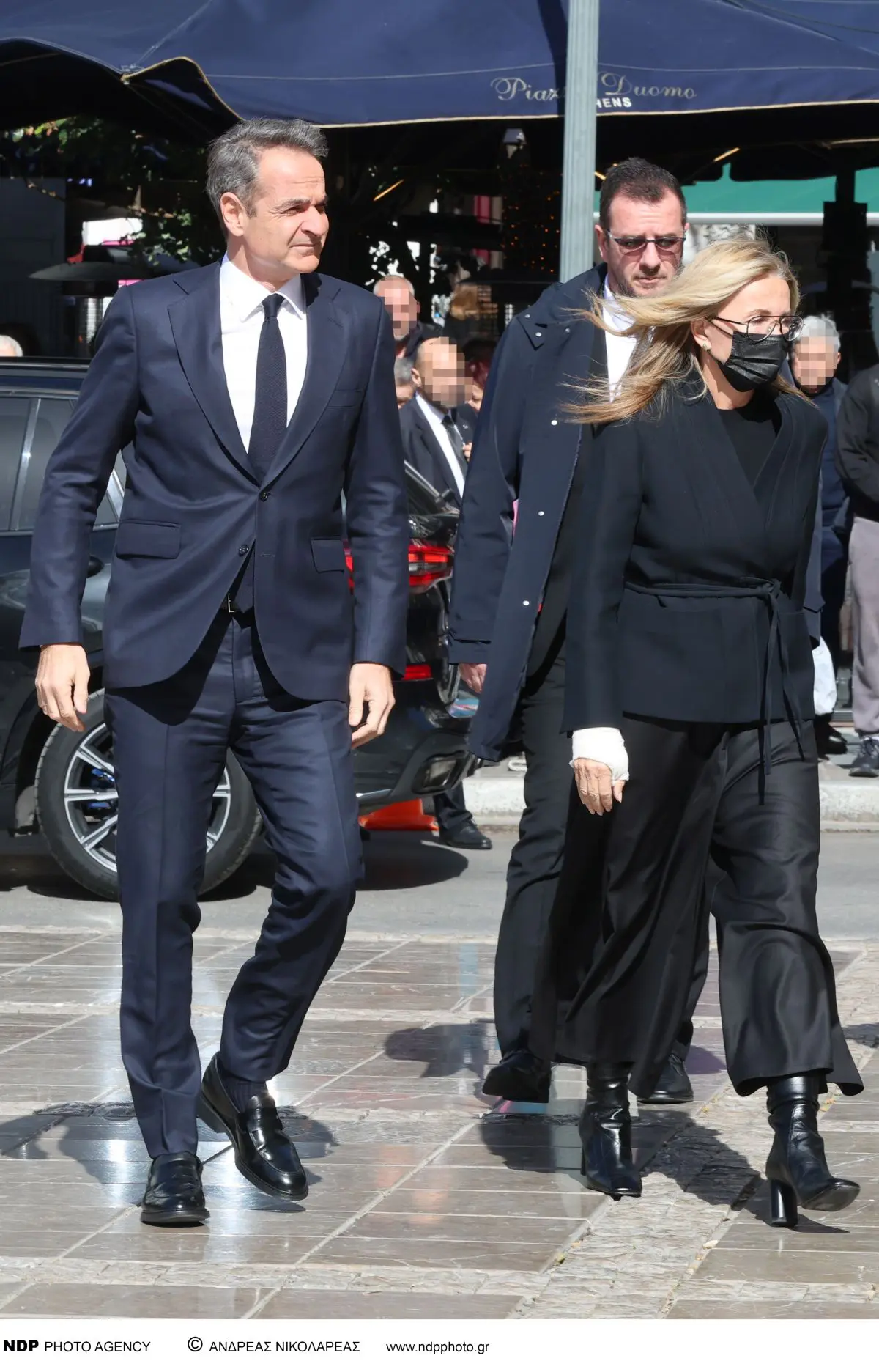 Όπως βλέπετε από τις φωτογραφίες που εξασφάλισε το YOUWEEKLY.GR, η Μαρέβα Γκαμπόφσκι φαίνεται να προχωρά στο πλευρό του Κυριάκου Μητσοτάκη ντυμένη στα μαύρα και φανερά στεναχωρημένη, ενώ, φορά χειρουργική μάσκα. Μάλιστα, φαίνονται ξεκάθαρα οι επίδεσμοι που έχει στα χέρια της, καθώς δεν έχουν περάσει πολλές μέρες μετά από το χειρουργείο της.