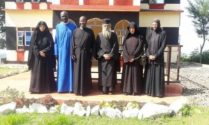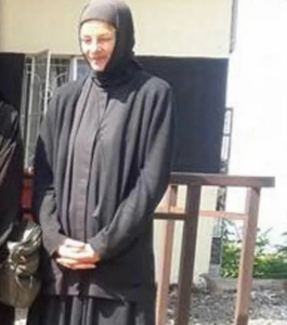 Με λευκό χιτώνα, χαμηλωμένο κεφάλι και λυμένα τα μακριά μαλλιά της, η γυναίκα που παρουσιάστηκε στη διαδικασία της μοναχικής κουράς εκάρη μοναχή με το όνομα Φεβρωνία στον Ιερό Ναό του Αγίου Μάρκου στην Κένυα, ήταν η Ναταλία Λιονάκη, πριν από κάποια χρόνια.