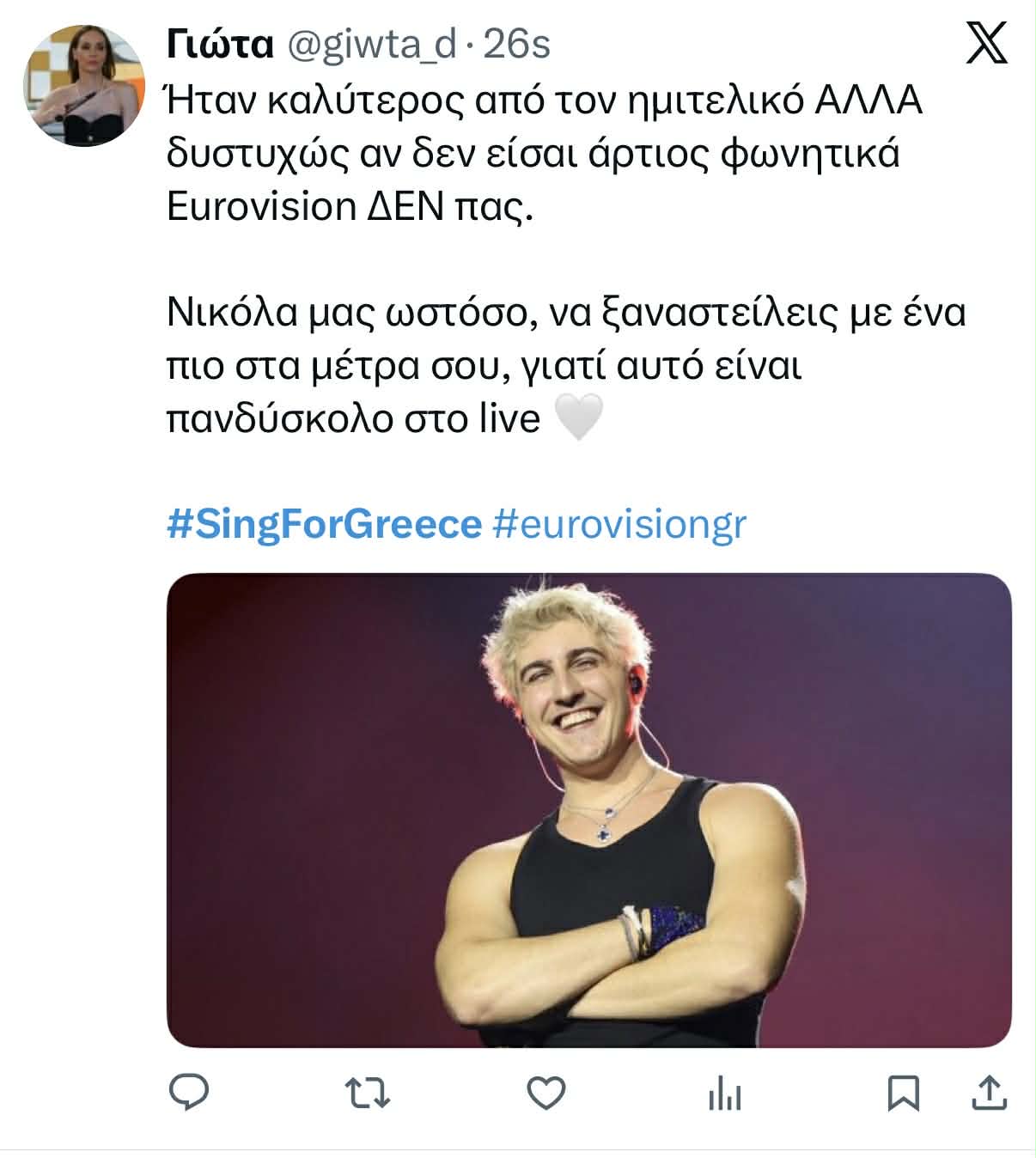 Θυμίζουμε ότι ο Good Job Nicky σχολιάστηκε έντονα και με την εμφάνισή του στον ημιτελικό του Sing for Greece. Ο γιος του Γιάννη Πάριου, όπως και ο Akylas, έχει αποκτήσει φανατικό κοινό, αλλά και αρκετούς πολέμιους όπως φανερώνουν τα σχόλια που έχουν γραφτεί