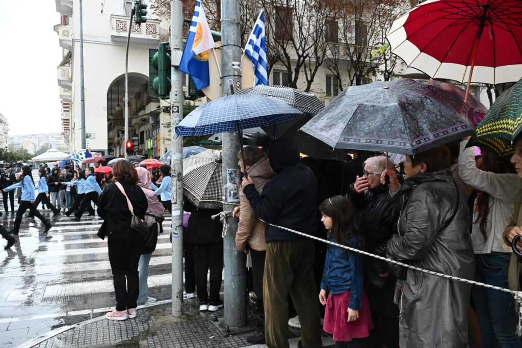 Παρέλαση υπό καταρρακτώδη βροχή στη Θεσσαλονίκη