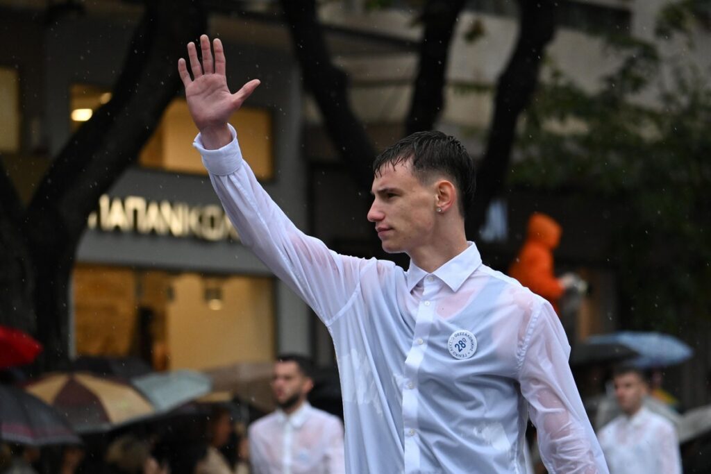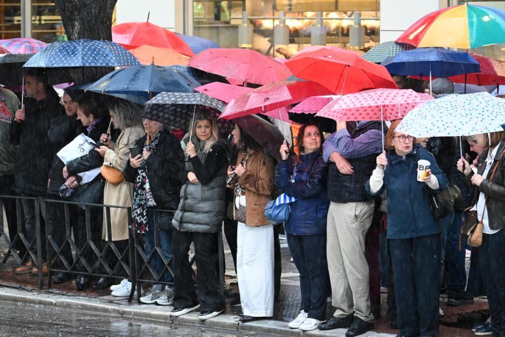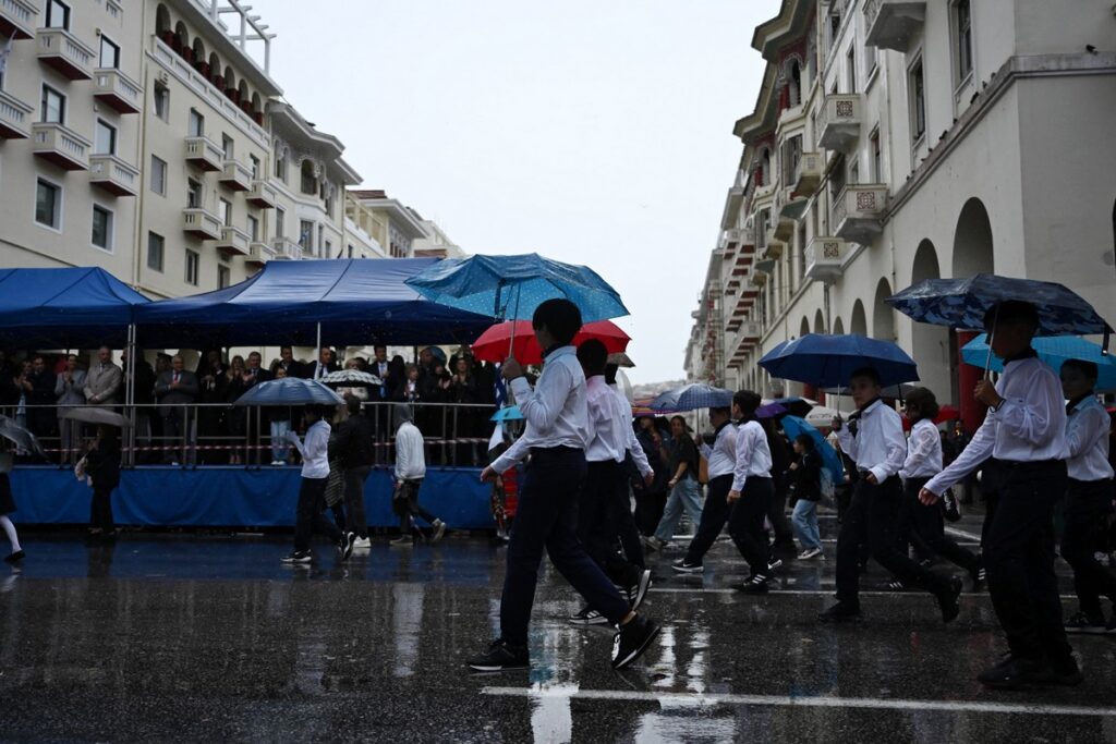 Με την καταρρακτώδη βροχή που έπληξε τη Θεσσαλονίκη να ξεσπά την ώρα της μαθητικής παρέλασης, αυτή ολοκληρώθηκε σε χρόνο ρεκόρ.