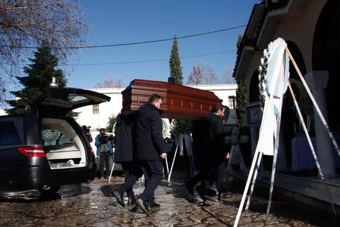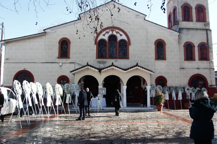 Η κηδεία της άτυχης Ελένης, που δούλευε για χρόνια στο εργοστάσιο Βιολάντα των Τρικάλων, αφήνει πίσω της ένα παιδί 13 ετών έγινε στον Ιερό Ναό Αγίου Κωνσταντίνου Τρικάλων.
